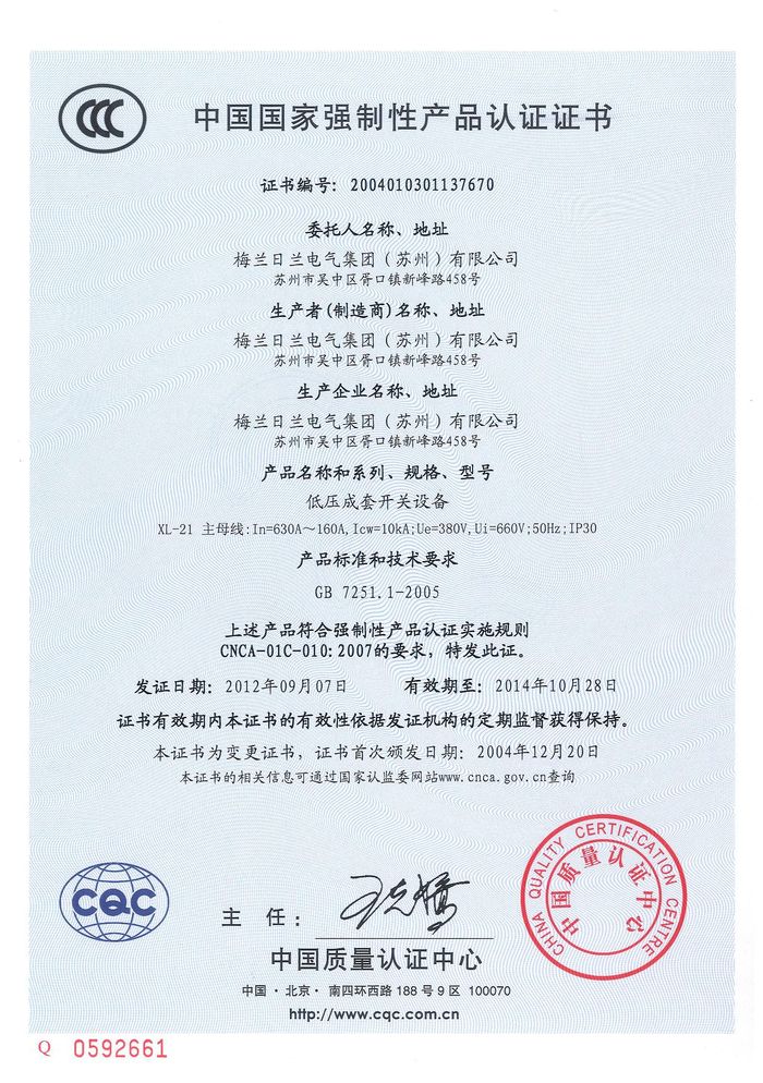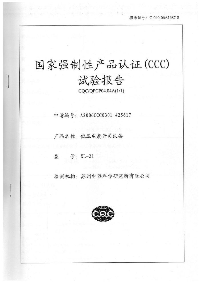 (成套)XL-21主母線資質(zhì)證書(shū)