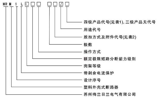注:1)配電用斷路器無代號,電動機(jī)保護(hù)用斷路器以2表示。