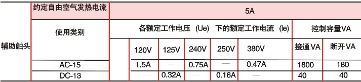 2、輔助觸頭技術參數(shù)