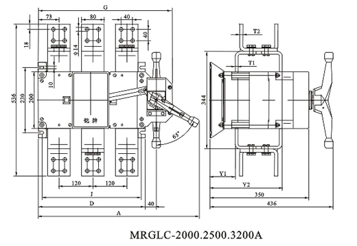 型號規(guī)格 | A | D | G | J | T1 | T2 | Y1 | Y2 |