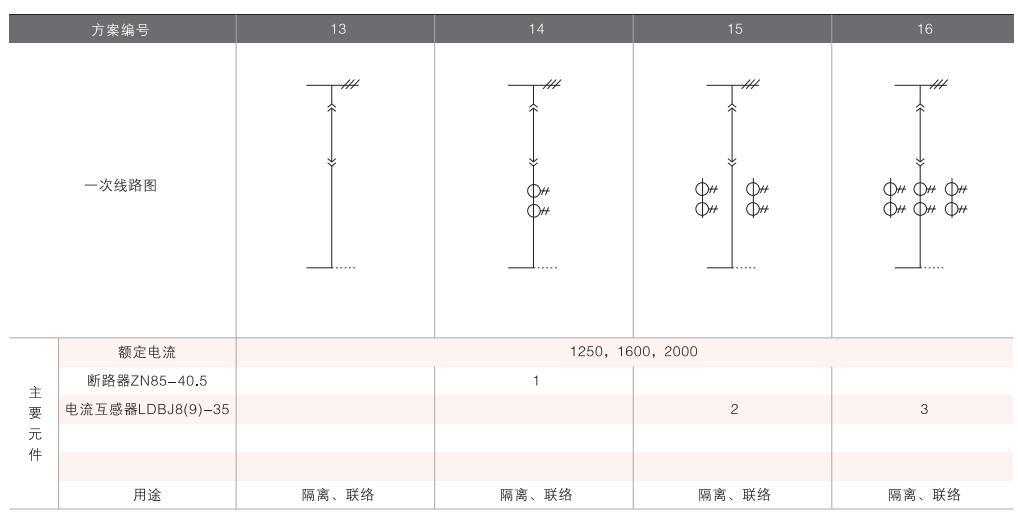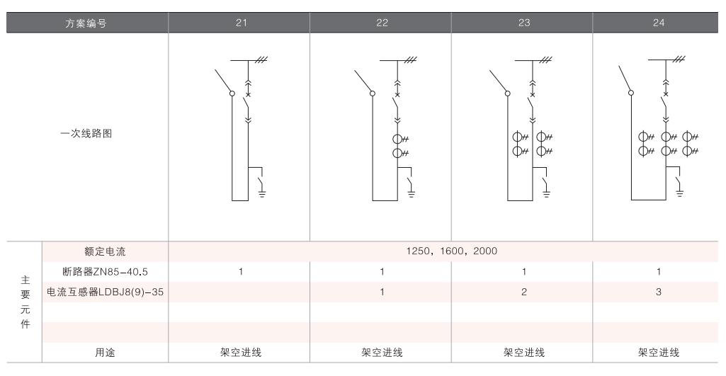 開(kāi)關(guān)柜的一次接線(xiàn)方案有27個(gè)常用典型方案,能滿(mǎn)足用戶(hù)電纜進(jìn)出線(xiàn)、架空進(jìn)出線(xiàn),聯(lián)絡(luò)級(jí)測(cè)量、保護(hù)等的需要,若有不同與現(xiàn)有方案的其他方案的需要,請(qǐng)與廠(chǎng)方協(xié)商。