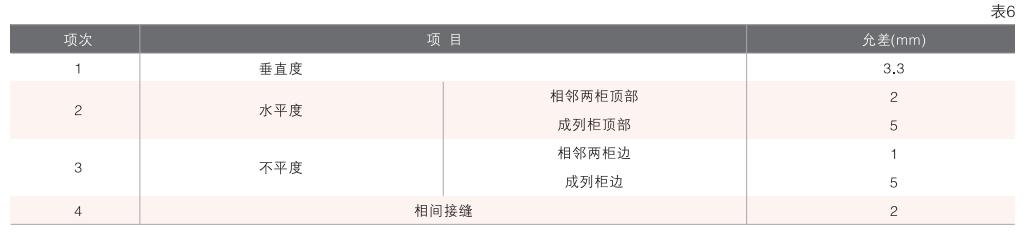 ◆裝置單獨或成列安裝時,其垂直度以及柜面不平度和柜間縫隙的偏差應(yīng)符合表6規(guī)定。